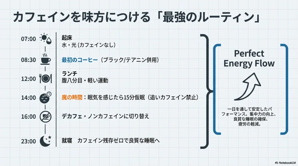 - 夕方以降はデカフェを活用し、睡眠の質を守る。