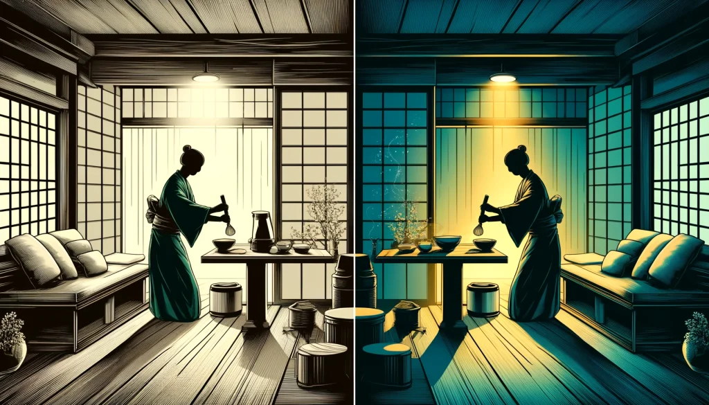 この方法では、茶の粉自体が持つ微細な質感や苦味が、茶会の雰囲気と調和し、瞑想的な体験を提供します。