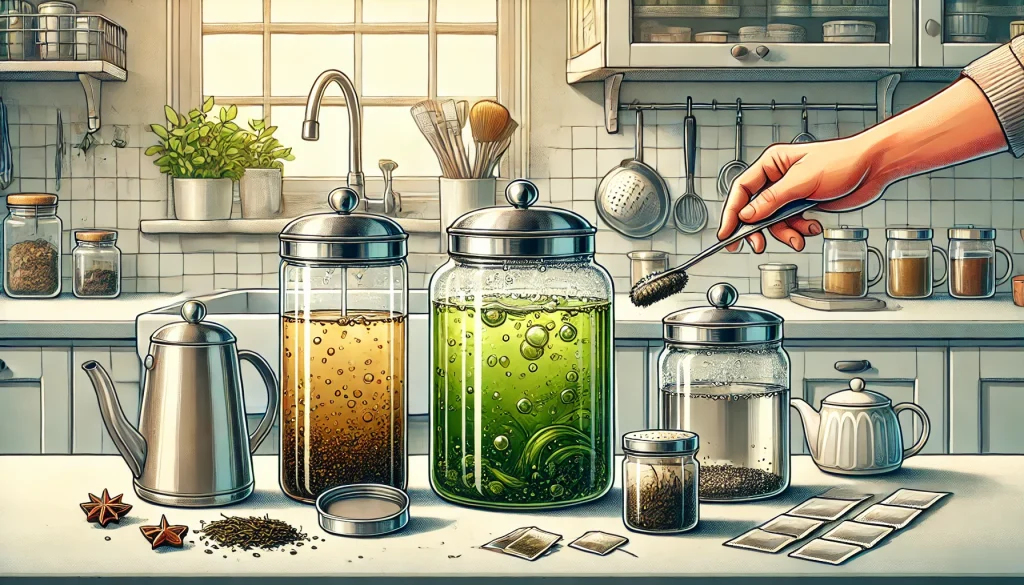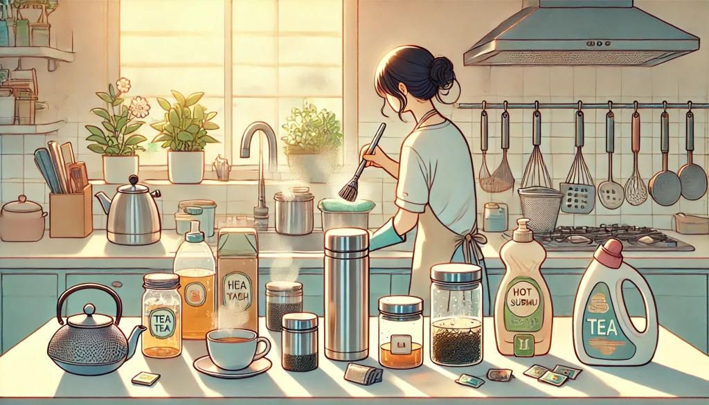 具体的には、次のステップを実行してください。まず、お茶を入れる容器を使用後すぐに洗うことが大切です。残ったお茶や茶葉が長時間放置されると、細菌が繁殖しやすくなります。特に夏場は細菌が繁殖しやすいため、毎回しっかりと洗浄しましょう。洗浄の際には、熱湯で消毒することも効果的です。熱湯を容器に注いで数分間放置するだけで、多くの細菌を殺菌することができます。